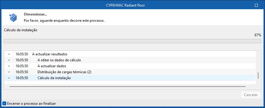 Realiza o cálculo da instalação, atualizando os resultados e, além disso, efetua o dimensionamento dos elementos da instalação que o permitem, para que cumpram as verificações.