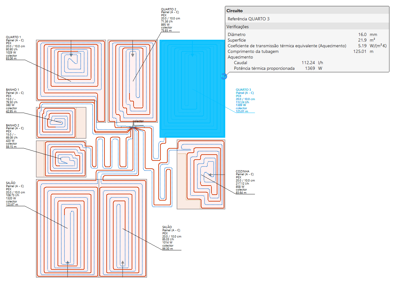 Permite consultar as verificações realizadas no último cálculo efetuado na obra. Após selecionar a opção, é possível passar o cursor sobre um elemento para consultar os seus resultados no ecrã ou premir sobre um circuito ou coletor para aceder diretamente à listagem de resultados específicos do mesmo.