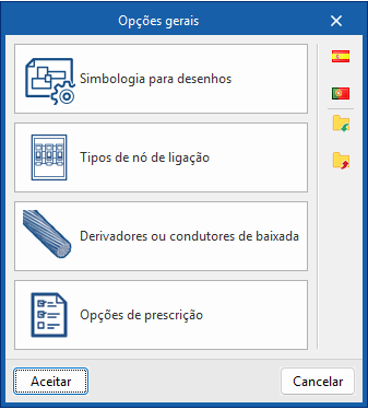 Na janela "Configuração" define-se a simbologia a a utilizar nos desenhos da instalação. Dispõe dos seguintes separadores: