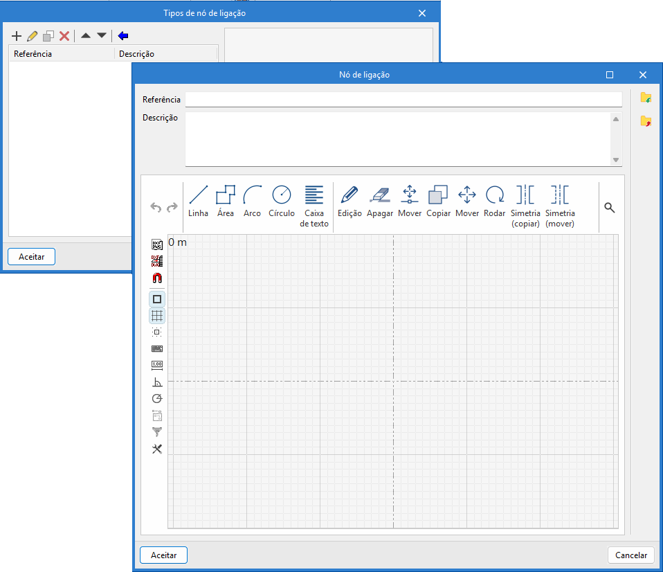 Permite realizar o desenho da simbologia dos nós de ligação manualmente ou importá-lo de ficheiros em disco:
