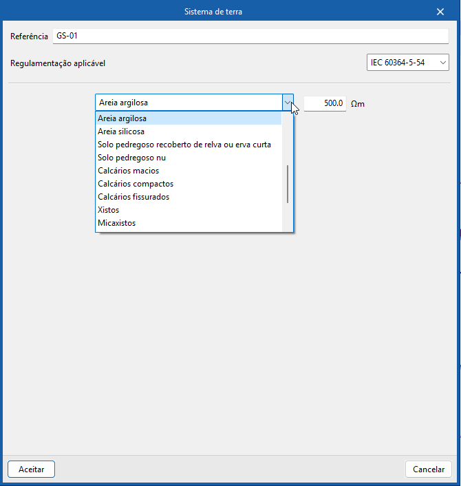 • Exterior (Tipo de terreno, Resistividade do terreno)
