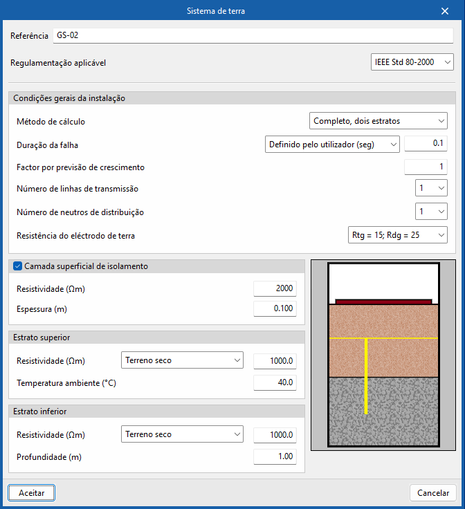 Ao criar um sistema de ligação à terra, indicam-se os seguintes parâmetros: