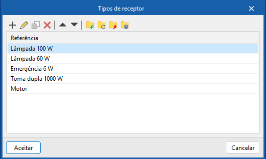 Os tipos de recetor aqui definidos podem ser carregados posteriormente ao utilizar as opções "Recetores" ou "Atribuir" propriedades aos recetores da barra de ferramentas principal.