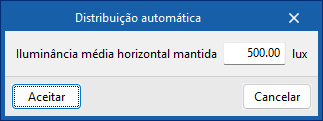 Permite ajustar os parâmetros da distribuição de luminárias.- Posicionamento