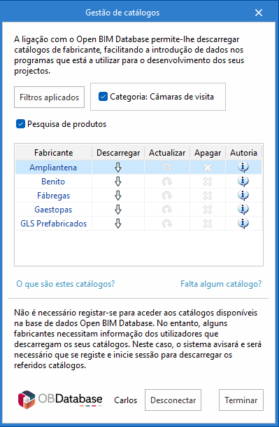1. Gerir os catálogos de fabricante, com o objetivo de facilitar a introdução de dados no projeto.