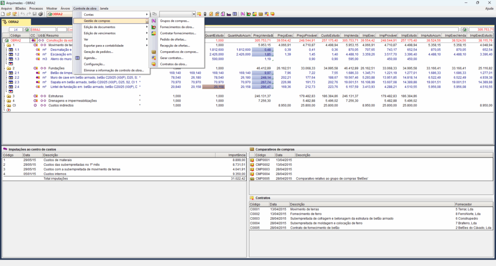 O módulo "Gestão de compras" do Arquimedes permite determinar as compras necessárias para executar um projeto e prever a faturação de fornecedores e subempreiteiros.