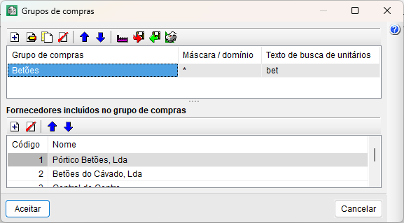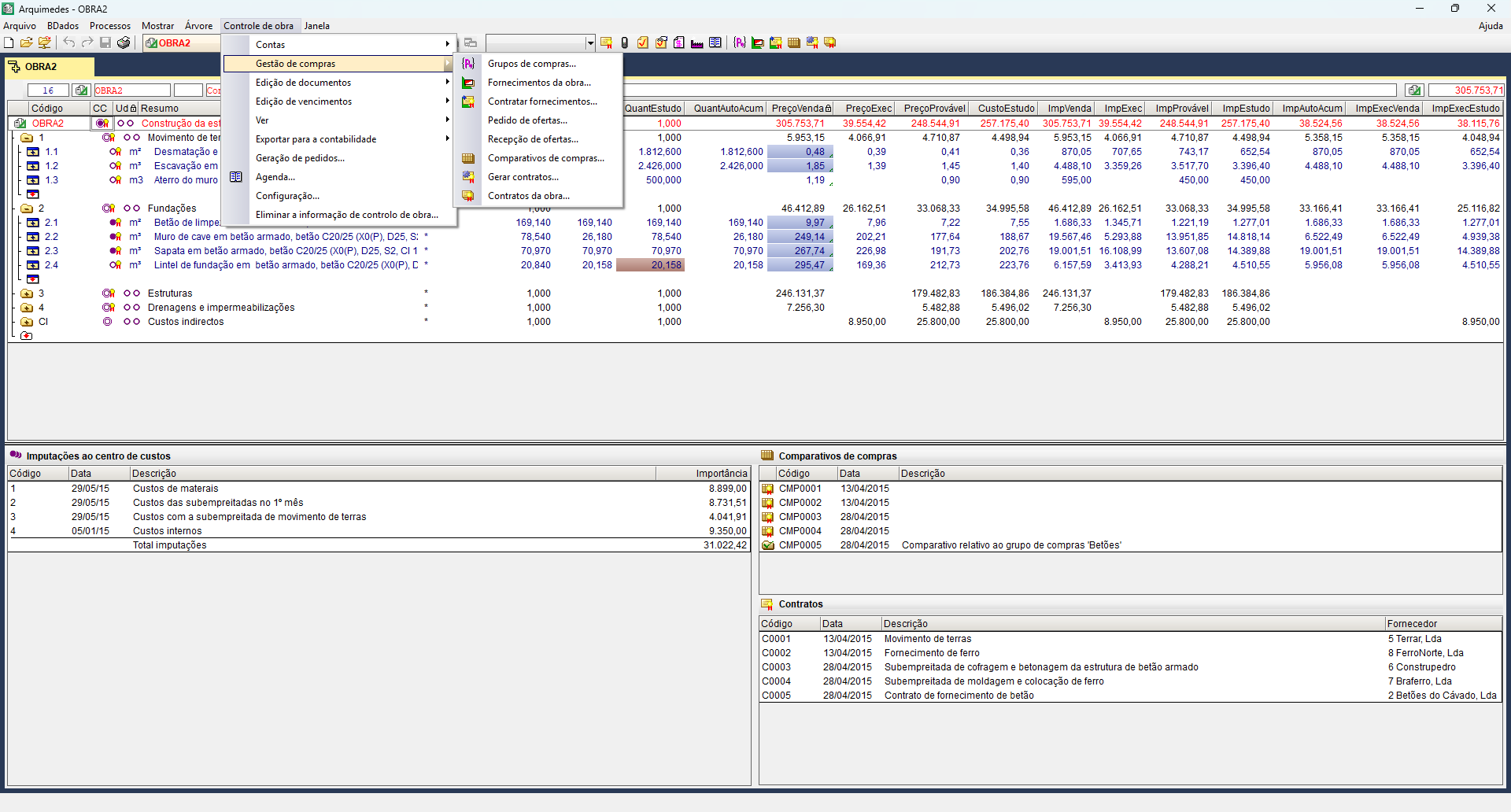 Com a opção "Grupos de compras", o programa permite ao utilizador criar grupos de compras e incorporar nestes grupos fornecedores ou subempreiteiros que selecione da lista de fornecedores da obra. Com "Fornecimentos da obra", podem-se vincular a cada grupo de compras os fornecimentos que existam na obra.