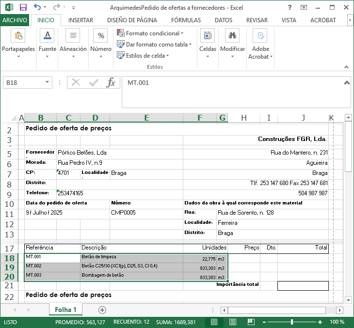 • Abra o documento que recebeu do fornecedor. A informação que o Arquimedes necessita deste documento são os preços oferecidos pelo fornecedor e o seu código.
